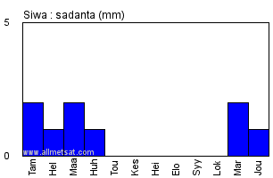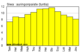 | Keskimääräinen päivittäinen auringonpaisteen kesto tunteina kuukaudessa. |